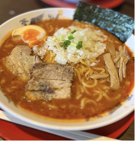とろ辛玉ねぎ中華は久慈市と八戸市の豪麺店舗限定のメニューで、味は味噌と醤油の2種類、辛さは1辛~5辛まであります。
