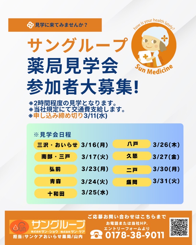 サンケア薬局 白銀店Aさんからの紹介でブログを書かせていただきますサンケアおいらせ薬局のYと申します。